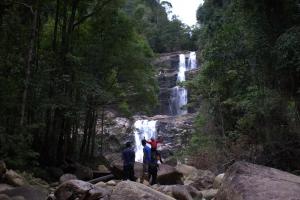 Melanjutkan pendakian ke tiap tingkat air terjun, bagi yang tak mau berhadapan dengan terjal tebing, disarankan mengambil jalur aman menyusuri hutan.