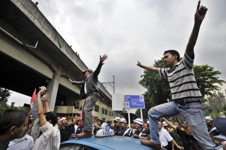 Jakarta, berita adzan — Ratusan sopir taksi melakukan unjuk rasa di depan gedung Dewan Perwakilan Rakyat (DPR), Jakarta, Selasa (22/3).